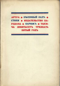 LOT : 1) IONOV Elie. Kolos. Poèmes. Ed. de l’état, Saint-Pétersbourg, 1921. 30 pp., in-12, reliure de l’éditeur, en l’état. 2) ARTOI. Les paroles d'une chanson. Ed. « Parabole », Paris, 1935. 42 pp., reliure de l’éditeur, A.B.E. 3)...