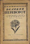 Révolution d’octobre), première partie. Ed. Z. Grzhebin, Saint-Pétersbourg, 1919. 99 pp., in-8, reliure de l’éditeur, en l’état. ЛОТ: 1) ЭЛЬЦБАХЕР П. Анархизм. Предисловие П.Кропоткина. Изд.И.П.Ладыжникова, Берлин, 1922 г. 237 стр., 21,5 х 14 см., изд.обл. (пятна, загрязнения), в сост. (след плесени). 2) ЛУНАЧАРСКИЙ А.В. Великий переворот (октябрьская революция), часть первая. Изд. З.К.Гржебина, Петербург, 1919 г. 99 стр., 23 х 16 см., изд.обл., в сост.