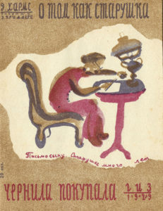 HARMS Daniil (1905-1942) A propos de la vieille dame qui achetait de l'encre. Illustré par E. Krimmer. Ed. de l’état, Moscou – Leningrad, 1929. 27 pp., in - 12, reliure de l’éditeur, A.B.E. Livre de la collection privée de l'artiste Mikhail...