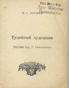 par G. Savitski. [Allemagne, 1945]. 46 pp., il manque une partie de la couverture, il-18, ex-libris « Jgor Wettrow », en l’état. 3) TOLSTOÏ L. Histoires choisies. Munich, 1947. 95 pp., in-16, reliure de l’éditeur (déchirures aux bords), A.B.E. [Издания Ди-Пи] ЛОТ крайне редких изданий лагерей ДИ-ПИ: 1) ПУШКИН А. Метель. [Германия], 1946 г. 22 стр., 14 х 10 см., изд.обл., в сост. (загрязнения, потертости, надписи ручкой на задней обложке). Редка, нет в РГБ и ДРЗ. 2) ЛЕСКОВ Н. Тупейный художник. Рисунки Г. Савицкого. [Германия, 1945 г.]. 46 стр., утрачена верхняя крышка обложки, 13,5 х 10 см., штемпельный экс-либрис « Jgor Wettrow », в сост. 3) ТОЛСТОЙ Лев. Избранные повести и рассказы. Бавария, Мюнхен, 1947 г. 95 стр., 15 х 11 см., изд.обл. (легкие надрывы по бортам), общ.хор.сост.