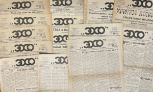 [Издания Ди-Пи] ЭХО. Еженедельная газета г. Регенсбург. Выпуски №45-50 (1948 г.), №3-6, 10-34 (1949 г.) Прилагаем: Державный Клич. Вестник российского общенационального народно-державного движения. Отдел печати РОНДД. Редактор С. Киенко. Выпуск №1 (1948 г.)