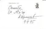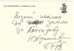 par G. Aïgui sur la page de titre, B.E. 2) Dronnikov. Les Cinq poèmes de Aïgui. Gubaidulina et ses portraits. 1995. Quatre CAS par N. Dronnikov. Couverture illustrée, B.E. АЙГИ Геннадий - Автограф ДРОННИКОВ Николай - Автограф Лот из двух книг поэзии Геннадия Айги: 1) Поклон-пению. Изд. Н. Дронников, Париж, 1992 г. 91 стр., экз. №419 (тираж 500 экз.), 23,5 х 21 см., изд.обл., дарственная надпись от Г. Айги на титульном листе, хор.сост. 2) Дронников. Aigui пять стихотворений. Gubaidulina портреты современников. 1995 г. Четыре карточки с автографами Н. Дронникова. Представлена в иллюстрированной обложке, хор.сост.