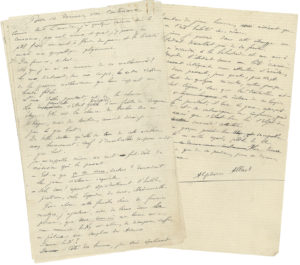 Alphonse ALLAIS (1854-1905). 2 manuscrits autographes, le 1er signé, [1887-1888] ; 4 et 2 pages in-8.{CR}Deux contes pour Le Chat Noir.Pour se donner une contenance. Conte publié dans Le Chat Noir le 10 décembre 1887 (repris dans Le Journal sous...