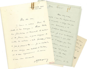 AVIATION. André BLAIGNAN (1890-1968) pilote de la guerre 14-18. L.A.S., Aix-les-Bains 12 janvier 1916, à Jacques Mortane ; 16 pages in-8.{CR}Après son accident, il rassemble ses souvenirs sur le début de la guerre, à Dijon, puis Belfort, où...