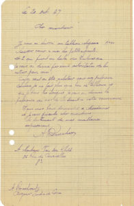 André BAUCHANT (1873-1958) peintre. 2 L.A.S., octobre-novembre 1947, à M. Van der Klift ; 1 page in-8 chaque (trous de classeur).{CR}À un collectionneur. – 20 octobre. Il lui a laissé « un tableau religieux N° 40 “Laissez venir à moi...