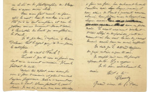 Turski] ; 5 pages in-12.{CR}Sur Blanqui. Montreux 25 décembre 1877 : « je ne suis pas venu en Suisse pour mon plaisir, mais dans le but spécial que vous savez et pour peu de temps » ; il serre « la main du citoyen Grigorieff »… Paris 16 février 1881, au sujet du journal de Blanqui, Ni Dieu ni Maître (le 1er n° avait paru le 20 novembre 1880) : « je suis tout à la fois administrateur, correcteur, secrétaire de la rédaction, metteur en vente et homme de peine du journal. Par nous et nos amis, nous vendons en effet le journal nous-mêmes et nous nous en trouvons bien ». Il n’a aucune photo de Blanqui : « Nous avons fait mouler sa face après sa mort. Mais le moulage n’a été tiré qu’à un seul exemplaire et nous le gardons comme document devant servir à l’exécution du buste qui sera placé sur sa tombe »…