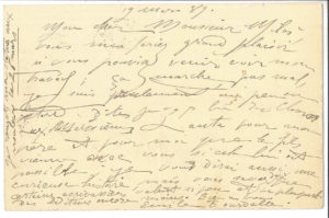 Émile-Antoine BOURDELLE (1861-1929). L.A.S., [Paris] 19 mars 1889, au critique d’art Léon Roger-Milès ; 1 page oblong in-12, adresse au verso (carte postale).{CR}« Vous me feriez grand plaisir si vous pouviez venir voir mon travail ; ça...