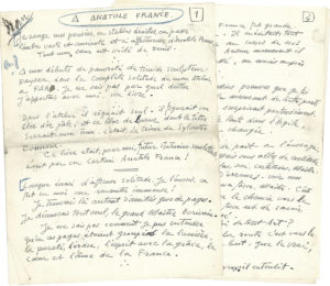 Émile-Antoine BOURDELLE (1861-1929). Manuscrit autographe signé. À Anatole France, 15 octobre 1924 ; 6 pages in-4.{CR}Hommage à Anatole France, mort le 12 octobre. Le manuscrit a servi à la publication.Le premier contact de Bourdelle avec...