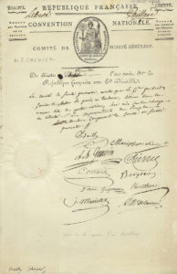 en liberté du citoyen Gaillard, « courier de malle de Paris à Toulouse, détenu dans la maison dite des quatre nations ». Outre Marie-Joseph Chénier qui a écrit, ont signé : Edme Bailly, François Bergoeing, Edme Courtois, Pierre-Marie Delaunay, Louis-Benoît Genevois, Pierre Guyomar, Augustin Kervelegan, Jacques Mariette et Joseph Pierret.