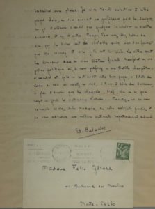 Édouard DALADIER. L.A.S., [château de Chazeron] 20 octobre 1940, à Mme Félix Gérard à Monte-Carlo ; 2 pages in-4, enveloppe (sous verre).{CR}Belle lettre de sa prison. Il évoque la rencontre de sa correspondante, « parmi ces amis fidèles...