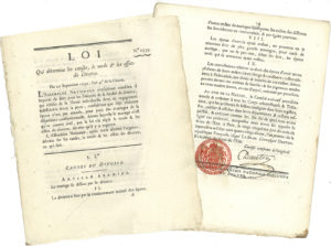 lois : 14 août, sur le partage des terrains communaux ; 16 août, sur l’inventaire et le dépôt au garde-meuble des diamants et effets du trésor de Saint-Denis et des meubles et effets du château des Tuileries ; 20 septembre, sur le divorce.
