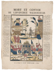 Image d’ÉPINAL. Mort et Convoi de l’Invincible Malborough. Fabrique de Pellerin, à Épinal. 31 x 41 cm, très bel état (traces de plis).{CR}Image coloriée au pochoir.