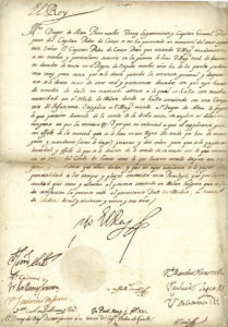 espagnol (fente au pli réparée avec petit manque).{CR}Au sujet du capitaine Pedro de Cuaço, qui jouissait d’une rente dans le royaume de Naples. Le Roi demande qu’on lui paie ce qui lui est dû, en considération de ses services dans l’état de Milan.On joint 2 lettres émanant du Vice-Roi de Naples (1649 et 1731).