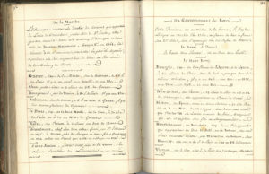 dos orné, tranches dorées (rel. usagée, charnières usées).{CR}Beau manuscrit réglé et calligraphié, en tête duquel figure une carte gravée et coloriée de La France, divisée en ses quarante gouvernemens généraux et militaires..., par M. Brion, ingénieur géographe du Roi (1765). Le traité précise les gouvernements militaires, « Provinces Eclésiastiques, ou Archevechés », généralités, parlements, conseils souverains, duchés-pairies (dont celui de Stainville, « érigé pour Mr de Choiseuil » [en 1786]), chambres des comptes, hôtels de monnaies, cours des aides, académies et sociétés littéraires, etc.On joint 2 pièces manuscrites et un imprimé concernant la ville d’Auxerre, XVIIIe siècle.