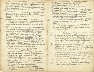 etc.On remarque, de la main de Jules de Goncourt, le premier jet au crayon d’un texte sur Nattier : « Assises glorieusement dans des poses théâtrales, des princesses respirent je ne sais quelle volupté robuste. [...] Ce ne sont plus des déités de la Régence, mais des femmes du dix-huitième siècle, avec leurs paniers profonds, leurs lèvres fines et ironiques, leur physionomie qui pense, leur front méditatif. [...] Il va jusqu’à la tendresse et au déchirement »...