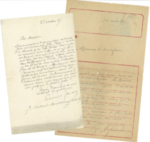 bouquin : La Maison d’un artiste dans l’Express » ; si le texte est trop long, ne donner « que le paragraphe sur la petite Maison »… – 25 octobre 1885, à un dessinateur. « Kistemaeckers voudrait faire une édition de la Fille Elisa en octobre, illustrée de dix eaux-fortes. Comme j’aime infiniment votre talent […] je l’ai prié de vous confier l’illustration de ce bouquin » ; il lui demande ses conditions « aussi exigues que possible »…On joint une petite l.a.s. de Jules de Goncourt, demandant de rétablir les apostrophes et les accents dans la feuille Louis XV enfant ; et une carte de visite a.s. d’Edmond à Edmond Cousturier (enveloppe), remerciant pour un article (1888).