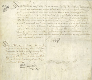 HENRI IV (1553-1610). P.S., Paris 14 juin 1601 ; contresignée par De Neufville ; parchemin oblong in-4.{CR}Brevet de conseiller d’État pour Antoine de Loménie, « secretaire du cabinet de sa Mté »…
