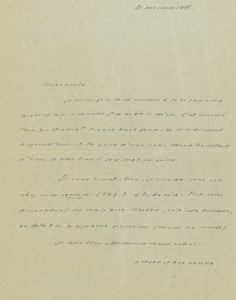 vous retrouver. Sherban Sidery vous a dit, je crois, que j’avais à vous proposer un travail – un véritable travail ensemble »… – 21 novembre. Il remet leur rencontre. « J’ai marché “sur un rhume” depuis huit jours, et décidément aujourd’hui, à la suite d’une sortie dans le brouillard d’hier, je suis tout à fait mal en point »…