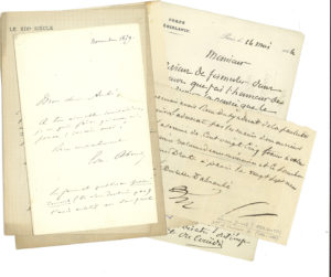 LITTÉRATURE et DIVERS. 18 lettres ou pièces, la plupart L.A.S.{CR} Edmond About (3), Laure d’Abrantès, Juliette Adam, Jules Brasseur, comte du Couëdic, Félix Faure, Émile de Girardin, Gabriel Hanotaux (au sujet d’un portrait de Richelieu),...