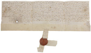 LORRAINE. 2 P.S., Mauvages (Meuse) 1563-1602 ; vélins 15 x 36,5 cm, avec sceau de cire rouge aux armes pendant sur queue (petit trou), et 38 x 57 cm, 3 sceaux aux armes sous papier pendant sur doubles queues.{CR}24 mai 1563. Donation par Ory Du...