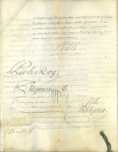cordelette rouge et verte.{CR}Important édit pour la création d’agents de change et de banque.Rappelant « les secours que les agens de change, de banques et marchandises ont procuré dans le cours des dernieres guerres et de la presente, aux Tresoriers, aux entrepreneurs des vivres, des estapes et autres », mais que ces offices sont « d’un prix tres modique, […] ce qui pourroit diminuer la confiance du public », le Roi décide de supprimer tous ces offices pour en créer de nouveaux : « Nous avons créé et estably, créons et establissons en titre d’office formé, cent seize nos conseillers agens de banque, change, commerce et finances », à Paris (20), Lyon (20), La Rochelle (6), Montpellier (6), Aix, Strasbourg et Metz(5), Rouen (10), Nantes (8), Tours (4), Saint-Malo, Dijon et Bayonne (4), Toulouse et Dieppe (2), au Havre de grâces et Calais (1), Dunkerque, Rochefort, Rennes et Brest (2), Port-Louis (1), en leur attribuant « des gages effectifs au denier vingt, etc.