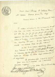 l’adjudication d’onze arcades du Palais-Royal. – Avril 1830, pouvoir au même pour l’enchère de la forêt de Montauban (Ille-et-Vilaine) ; signé aussi par Marie-Amélie, et leur secrétaire des commandements Oudard.