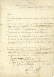 Charles de Lorraine, duc de MAYENNE (1554-1611) chef de la Ligue, il fut battu à Arques et Ivry par Henri IV, à qui il finit par se soumettre. P.S., Grenoble 15 novembre 1581 ; 1 page grand in-fol.{CR}Il ordonne le paiement de la caution due par...