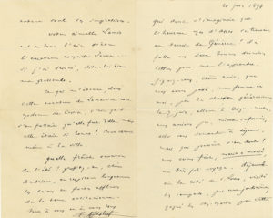 Frédéric MISTRAL (1830-1914). L.A.S., [Maillane] 20 juin 1894, à Mme Adrien Dumas à Villary, banlieue de Nîmes ; 4 pages in-8, enveloppe. {CR}Jolie lettre évoquant une excursion à Aigues-Mortes ; puis il a « gagné les Ste Maries par cette...