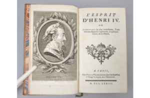 [PRAULT (L. -Laurent)]. — L'Esprit d'Henri IV, ou anecdotes les plus intéressantes, traits sublimes, reparties ingénieuses, & quelques lettres de ce Prince. — Paris, Prault fils aîné, 1773. — Un volume in-12, pleine basane marbrée...