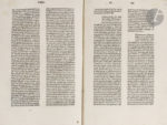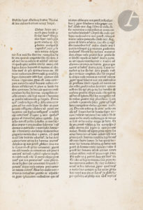 Rare édition incunable des postilles ou commentaires du théologien et exégète Nicolas de Lyre (vers 1270-1349) sur les 4 Évangiles, avec les additions et commentaires du dominicain Paul de Sainte-Marie (1350-1439) et les répliques du franciscain Mathias Döring (1390?-1469). Ces répliques étaient destinées à défendre Nicolas de Lyre face aux arguments de Paul de Sainte-Marie ; elles offrent un parfait témoignage de l’affrontement qui pouvait exister à l’époque entre deux écoles théologiques et deux familles d’esprit.