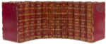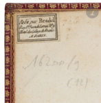 → Précieux exemplaire sur grand papier, au format in-8, complet des trois derniers tomes imprimés par Molini en 1769 et 1783, qui manquent souvent. L’ensemble a été très joliment relié uniformément par l’un des membres de la famille Bradel. L’étiquette à son nom collée dans l’angle au verso de la première garde du premier volume, donne l’adresse « Rue St Jean de Latran No 9. Hôtel du Collège de France ». On sait que ce relieur exerça essentiellement au début du XIXe siècle.