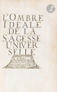 SABBATHIER (Esprit). — Idealis Umbra Sapientiæ Generalis. - L’Ombre Idéale de la Sagesse Universelle. — Paris : Madame Jablier, sœur de François-Marie de Paris, 1679. — 2 ouvrages en un volume in-8, 169 x 127 : (4 ff.), 21 ff. ; (4 ff.),...