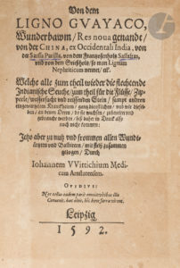 WITTICH (Johannes). — Von dem ligno Guayaco, Wunderbawm, Res nova genandt, von der China, ex Occidentali India, von der Sarssa Parilla, von dem Frantzosenholtz Sassafras, und von dem Grießholtz, so man Lignum Nephriticum nennet, etc. — Welche...