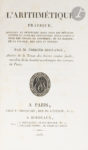 Édition originale rare de ce cours complet d›arithmétique, comprenant les bases de cette matière et tous les aspects de la comptabilité commerciale. Dédiée à François-Nicolas Mollien, ministre du Trésor public, elle débute par un long chapitre sur La Manière d’étudier l’arithmétique.