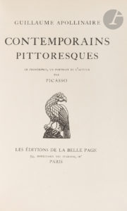 APOLLINAIRE (Guillaume). — Contemporains pittoresques. — Paris : La Belle page, [1929]. — In-12, 200 x 153 : portrait, (2 ff. blancs), 100 pp., (6 ff. deux derniers blancs), couverture imprimée.