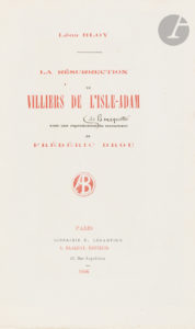 BLOY (Léon). — La Résurrection de Villiers de L’Isle-Adam. — Paris : Librairie E. Lecampion, A. Blaizot, 1906. — Plaquette in-8, 243 x 159 : frontispice, (4 ff.), 32 pp., couverture imprimée.