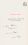 Précieux exemplaire, un des rarissimes tirés sur papier vergé, dont le tirage n’est pas mentionné à la justification. Celui-ci est l’exemplaire offert au critique et écrivain René Martineau (1866-1948), portant cet envoi autographe de Bloy, signé par l’auteur et Frédéric Brou :