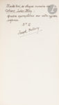 Comme promis dans sa dédicace, Bollery a écrit sur 4 pages de garde non pas l’histoire des Cahiers mais une véritable autobiographie relatant les faits depuis son enfance, qui l’ont amené à admirer Léon Bloy et à lui consacrer une publication. Son texte est signé et daté de juillet 1957, en voici un extrait se rapportant au début de l’aventure éditoriale : « j’avais recueilli suffisamment de souscriptions pour assumer la première année de la revue. Le premier numéro des Cahiers Léon Bloy parut le 25 septembre 1924, tiré à 250 exemplaires, nombre plus que suffisant, pensais-je. Il fut rapidement épuisé et je fus obligé de faire procéder à une nouvelle composition et à un second tirage pour satisfaire de nouveaux abonnés. Les Cahiers Léon Bloy ont tenu - et au-delà - les promesses jugées téméraires de mon manifeste. Ils ont paru régulièrement tous les deux mois, sauf pour quelques numéros doubles et triples qui ont reporté, parfois, la périodicité à 4 ou 6 mois.