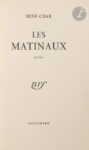 CHAR (René). — Les Matinaux. — Poésie. — Paris : Gallimard, [1950]. — In-16, 184 x 115 : 150 pp., (3 ff. dernier blanc), couverture imprimée.