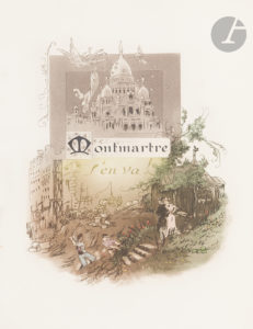 MORIN (Louis). — Montmartre s’en va… — Paris : imprimé pour Jean Borderel, 1908. — Grand in-8, 282 x 220 : frontispice, (2 ff.), 135 pp., 10 planches, couverture imprimée.