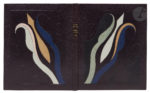 Maroquin noir, plats recouverts d’une composition abstraite faite de box noir, bleu, verts pâles et beige ainsi que de volutes à froid, dos lisse, filet doré en encadrement à l’intérieur, doublures et gardes de soie grise, tranches des feuillets de garde dorées, non rogné, couverture et dos conservés, étui (Semet et Plumelle).