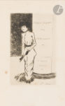 Bel exemplaire en reliure des ateliers Kieffer, enrichi d’un grand dessin original à l’encre de Forain, avec au verso un croquis original, de deux gravures à l’eau-forte de l’artiste, dont l’une pour les Croquis parisiens de Huysmans, et d’une illustration gravée sur bois en couleurs par Florian d’après Forain.