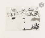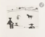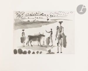 « Ce livre avait été commandé par Gustavo Gili père en 1927 pour sa collection de bibliophile “Ediciones de la Cometa” (…) Picasso avait fait alors quelques gravures (…) ; Henry de Montherlant écrivit une préface ; puis les guerres, en Espagne et ailleurs, mirent fin au projet. Or, en 1956, Gustavo Gili fils le rappela à Picasso. Au printemps 1957, à Cannes, quelques jours après la corrida de Pâques à laquelle il avait assisté à Arles, Picasso dessina au pinceau, à même le cuivre, ce sténogramme d’ombre et de lumières d’une tauromachie, créant ainsi le pendant moderne de “La Tauromaquia” de Goya (1815). Les 26 aquatintes accompagnent le texte de ce qui fut, en 1796, le premier manuel pour toreros et “aficionados” ; son auteur, le célèbre torero Pepe Illo » (Cramer).