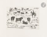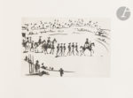 Belle édition très recherchée du célèbre et monumental traité de tauromachie du torero espagnol du XVIIIe siècle José Delgado y Gálvez (1754-1801), dit Pepe Illo ou Hillo, illustrée d’une pointe-sèche sur la couverture et de 26 aquatintes au sucre originales hors texte, non signées, de Pablo PICASSO (1881-1973).