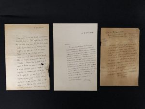 Intéressante lettre de 1858 " [...] j'avais lu votre sérieuse et intéressante étude. Et m'avez parfaitement démontré ces différences profondes qui séparent les deux peuples et leur organisation politique, leur manière et leur procédé dès l'origine, - différences [...] qu'il ont passé leur vie à prétendre éluder. Je me rappelle du pays de l'ancien prisonnier de Ham qui vont dans le même sens [...]". On joint une lettre de Villemain à Sainte-Beuve ; En juillet 1866, très intéressante réflexion sur les lettres de Marie-Antoinette " [...] Ces articles forment un tableau parfait dans leur contraste. Rien n'est oublié et vous avez bien fait de les recueillir. Sur le point délicat que vous touchez, je crois en effet, que nous avons été induits en erreur. Pourquoi ni vous ni moi, à l'heure qu'il est n'avons-nous vu le texte de ces toutes premières lettres de la Dauphine, et comment le texte de M. d'Hunolstein se trouvant faux au point de vue des experts M. Feuillet en aurait-il un plus vrai et de source authentique qu'il ne montre à personne malgré toutes les exhortations qu'on a pu lui faire ? [...] il y a là dessous une imposture, et jamais (malgré la théorie moderne) imposture ne va sans imposteur. [...] Le portrait que vous avez fait de Marie-Antoinette subsiste et les grandes parties en restent tout-à-fait indépendantes de la petite fraude d'un marchand de couleurs. [...]" . Sainte-Beuve accuse Feuillet de Conches d'imposture à propos des lettres et documents inédits publiés chez Plon en 1865 et les Correspondances inédites de Marie-Antoinette publié sur les Documents originaux par Vogt d'Hunolstein chez Dentu en 1864.