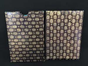 cm., entoilage blanc époque, bordé d'un liséré de satin bleu pâle, sous chemise et étui cartonné orné d'un décor peint doré, titre doré sur une face latérale (un coin de l'étui frotté).