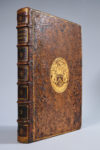 Veau havane moucheté époque, dos à 6 nerfs ornés, titre, filets et fleurons dorés, double filet doré bordant les plats, armes dorées aux centres, tranches marbrées, dos et coins restaurés (épidermures aux plats ; mouill. claire au coin du titre-front. et aux tout dernierfs f., , marge restaurée p.337, bruniss. et rouss. modérées ; 2 f. manquent à la fin mais tables et index sont complets).