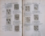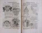 Premier ouvrage où l'on fit usage de manière uniforme d'employer des hachures pour exprimer les émaux et métaux. L'illustration se compose d'un titre-frontispice gravé par F. Greuter d'après F. Romanelli, du portrait gravé de Th. Barberini, d'un frontispice non signé aux armes des Barberini, et de très nombreuses figures d'armoiries gravées dans le texte.