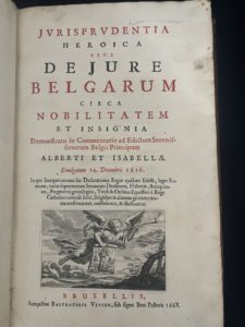 [CHRISTYN (Jean-Baptiste)]. — Jurisprudentia heroica sive De jure Belgarum circa nobilitatem et insignia... [Première partie]. — Bruxellis, sumpt. B. Vivien, 1668. — In-folio, [6] f., 586 p., [16] f., fr., fig.,