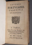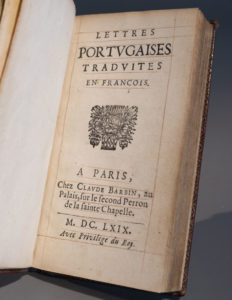 [ALCAFORADA (ou Alcaforado, Mariana) ; — GUILLERAGUES (Gabriel de)]. — Lettres portugaises traduites en françois. — A Paris, chez Claude Barbin, 1669. — In-12, [3] f. (titre, avis au lecteur), 182 p., 1 f. (privilège),